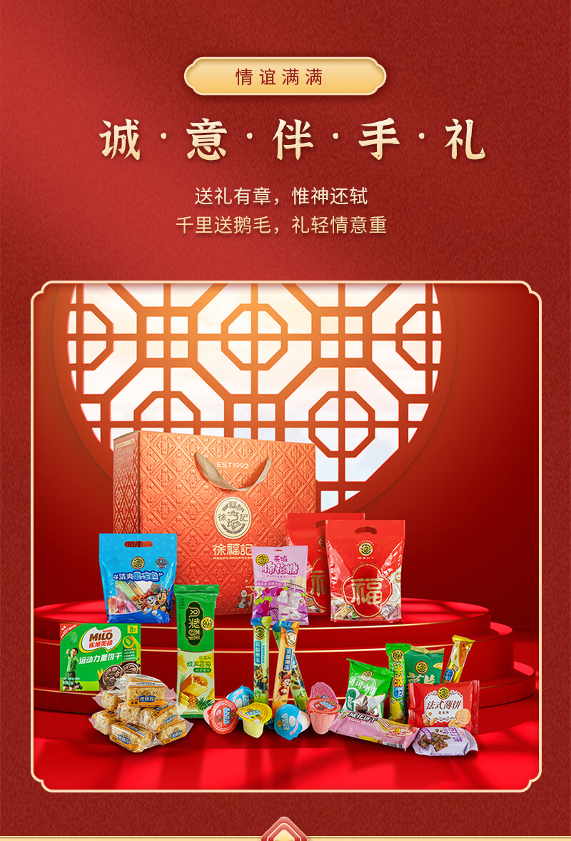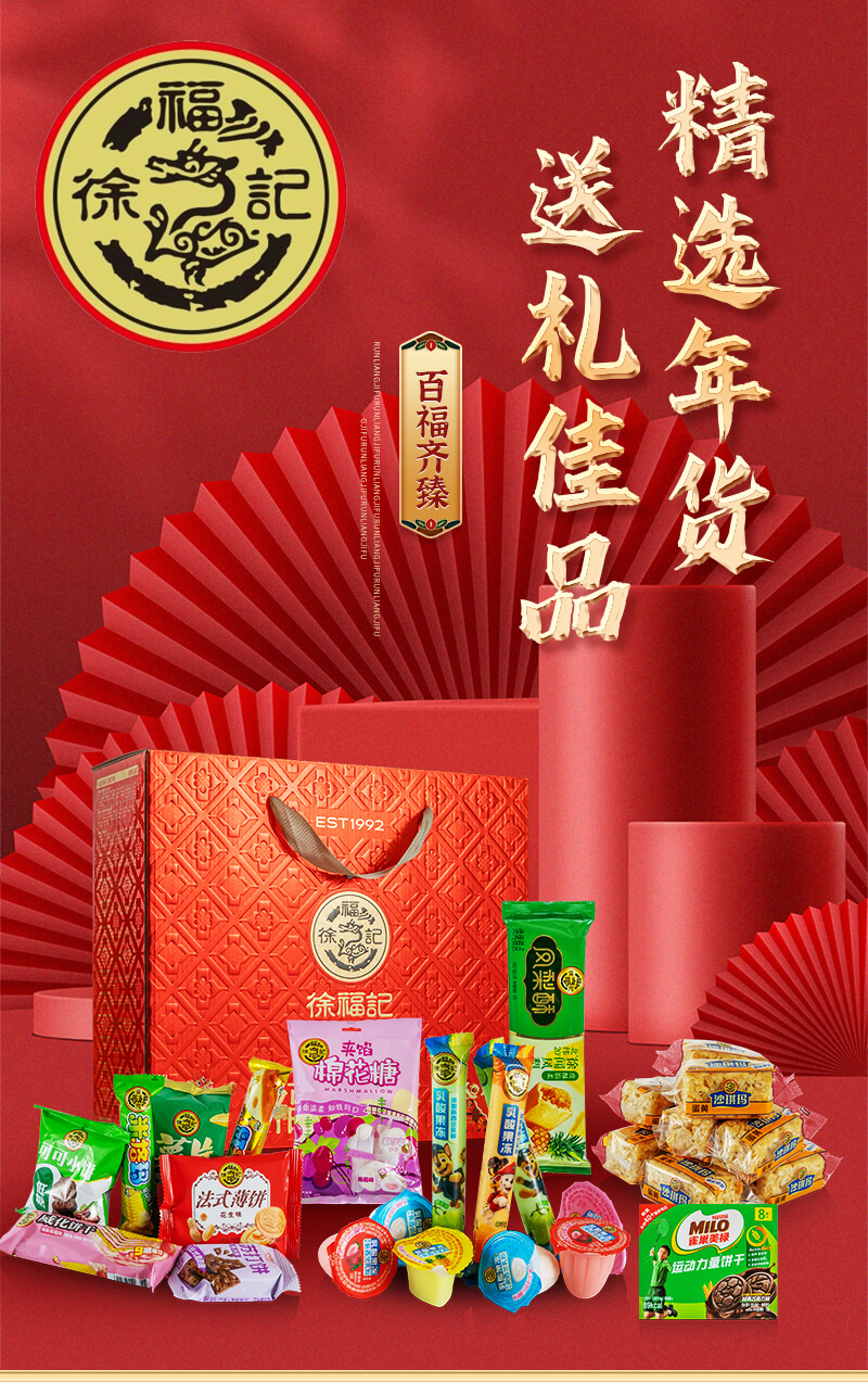 百福齊臻 發布時間:2025-01-04點擊:44 團購優惠請聯系我們 內容物:徐福記包餡酥鳳梨味袋裝69g徐福記沙琪瑪松軟蛋黃味275g雀巢美祿運動力量夾心餅干巧克力味盒裝72g徐福記夾餡棉花糖袋裝64g徐福記乳酸果凍(草莓、白桃、酸奶、菠蘿)500g徐福記混合銀致糕點(蘇打餅干、薯片、米果卷、威化餅干、低糖可可餅干、法式薄餅)250g 請填寫您的信息 提交留言