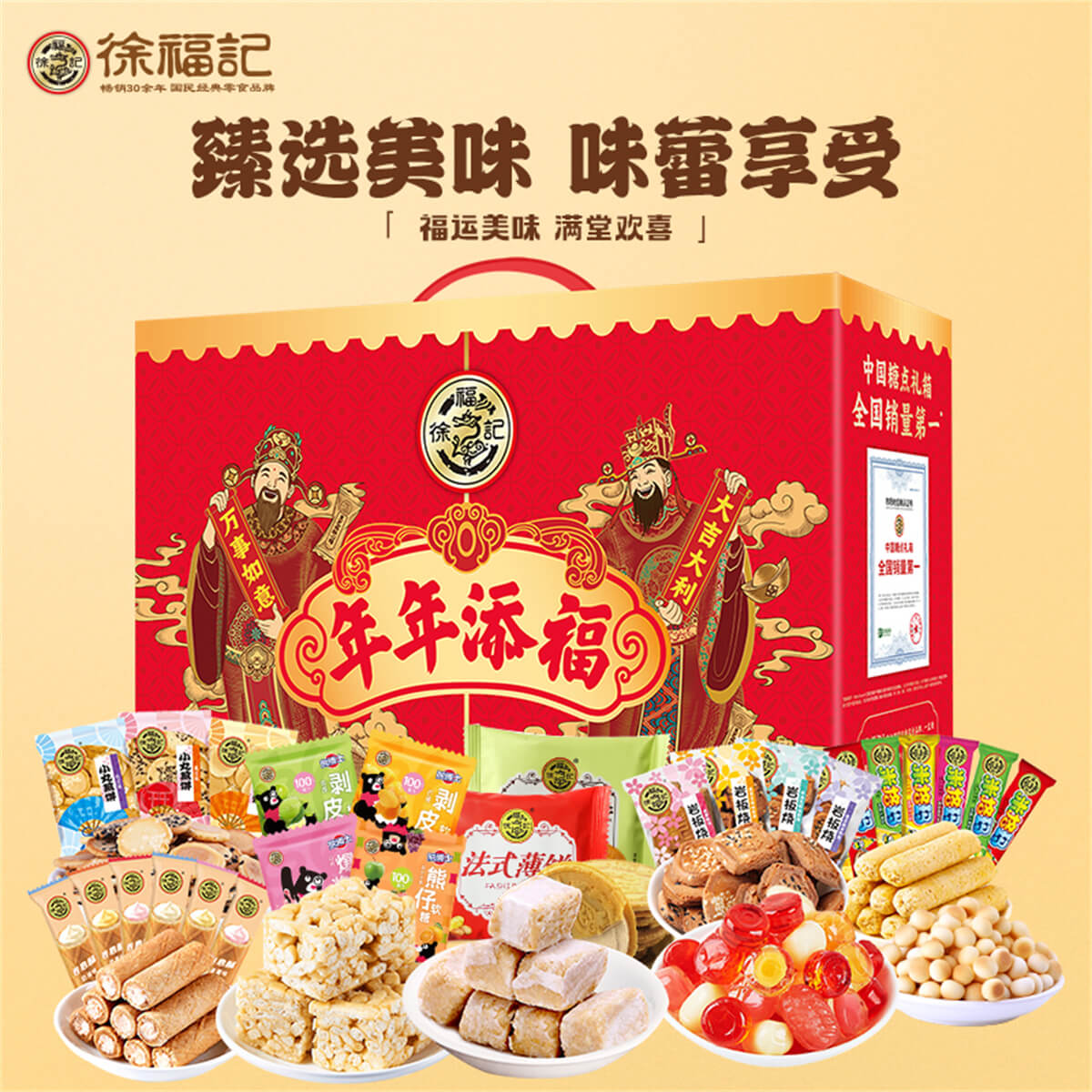 年年添福 發布時間:2025-01-04點擊:41 團購優惠請聯系我們 內容物:1:徐福記酥心糖150克2:徐福記沙琪瑪418克3:徐福記新年什錦糖120克4:100%果汁軟糖120克5:米格瑪110克6:徐福記綜合餅點200克(小丸煎餅、巖板燒、京屋果子、卷心酥、法式薄餅等) 請填寫您的信息 提交留言 Tag標簽: 上一篇:沙琪瑪吉禮 下一篇:福年
