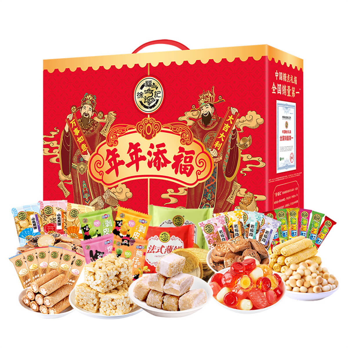 年年添福 發布時間:2025-01-04點擊:41 團購優惠請聯系我們 內容物:1:徐福記酥心糖150克2:徐福記沙琪瑪418克3:徐福記新年什錦糖120克4:100%果汁軟糖120克5:米格瑪110克6:徐福記綜合餅點200克(小丸煎餅、巖板燒、京屋果子、卷心酥、法式薄餅等) 請填寫您的信息 提交留言
