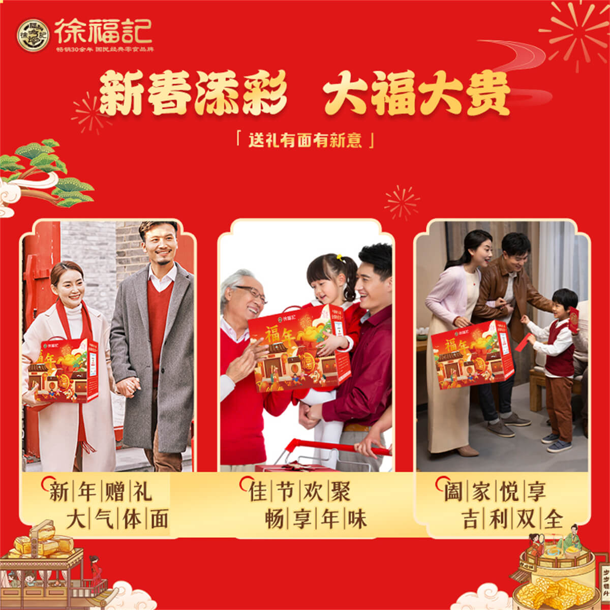 福年 發布時間:2025-01-04點擊:37 團購優惠請聯系我們 內容物:1:徐福記酥心糖150克2:徐福記沙琪瑪418克3:徐福記新年什錦糖120克4:100%果汁軟糖120克5:米格瑪110克6:徐福記鳳梨酥200克7:徐福記綜合餅點200克(小丸煎餅、巖板燒、京屋果子、卷心酥、法式薄餅等) 請填寫您的信息 提交留言